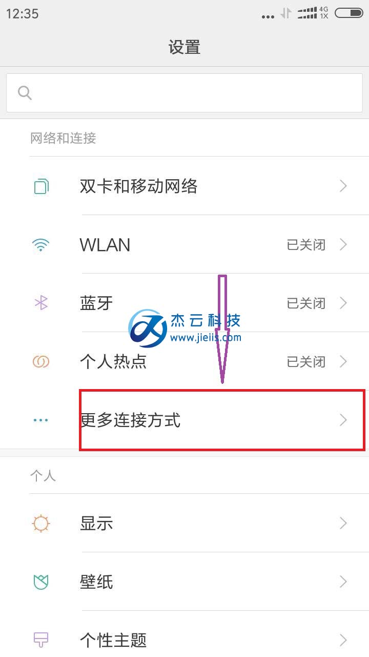 首先打开您手机的系统设置,找到更多链接方式,如图